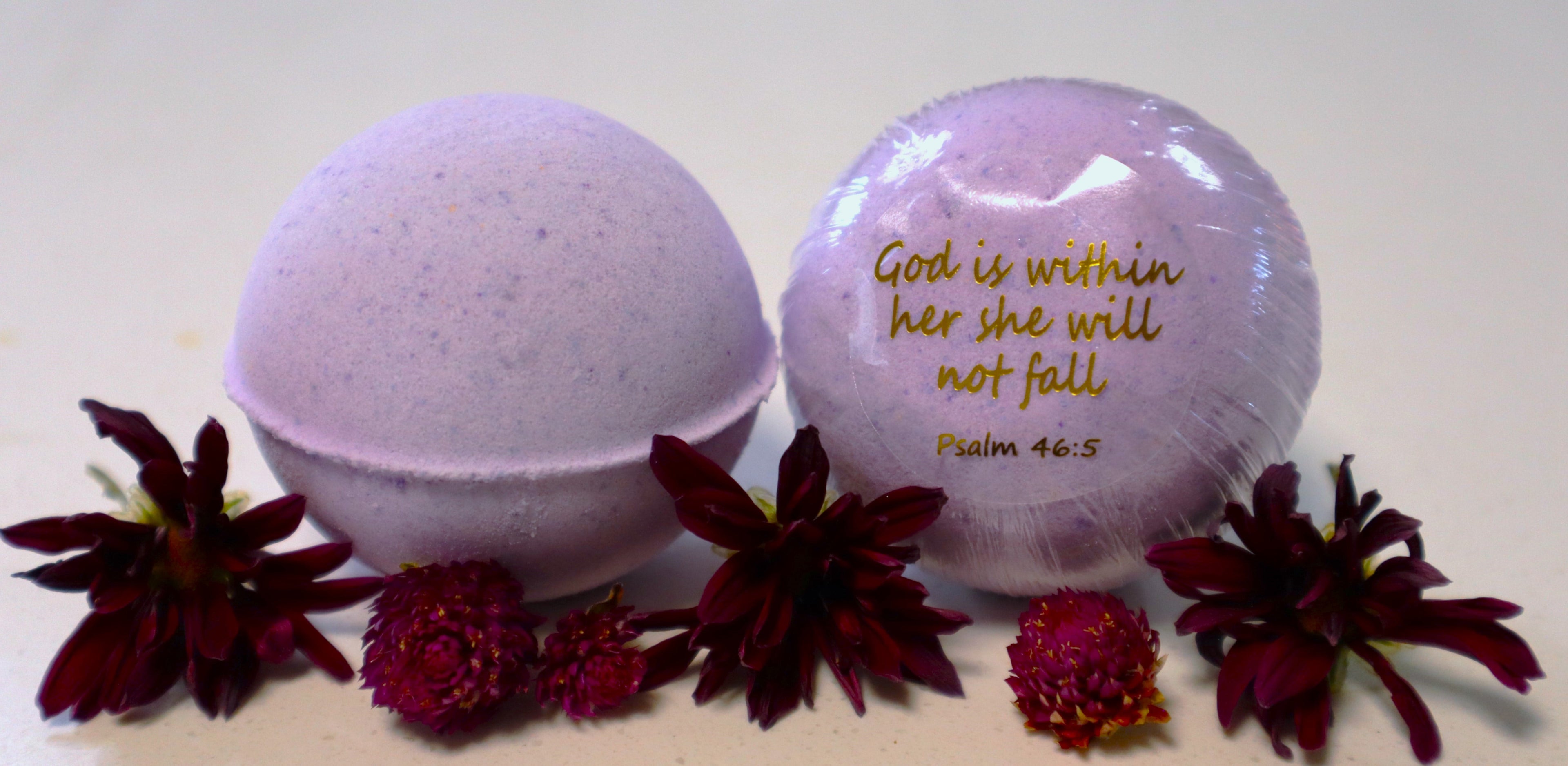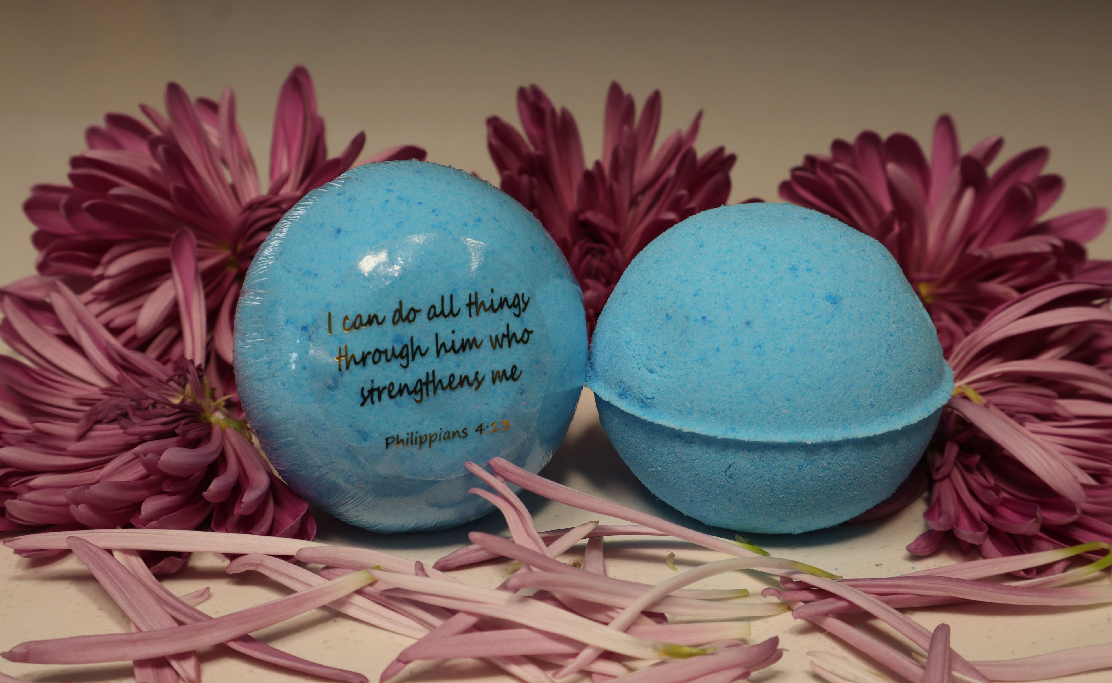 Through our bath bombs, shower pucks, bath fizzers, laminated prayer cards, and faith-inspired apparel, we pray to bring scripture into every part of your day, from morning to night.