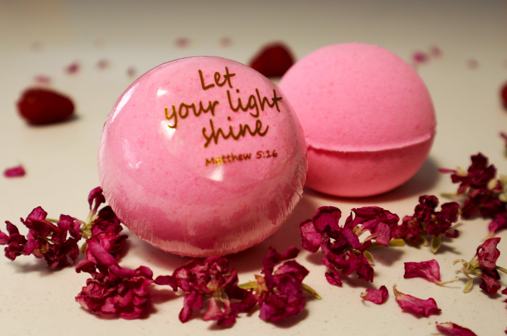 Embrace the beauty of Patience, a Fruit of the Spirit, with this calming pink bath bomb. As it fizzes, releasing the herbal freshness of rosemary and the bright, citrusy aroma of lemongrass essential oils, let it remind you to trust in God's perfect timing. Rosemary, long associated with remembrance, calls us to hold onto God’s promises, while lemongrass uplifts the spirit, renewing strength as we wait on Him. As the soothing waters envelop you, let go of restlessness and surrender to His peace, knowing that His plans are always good and His timing is always perfect.